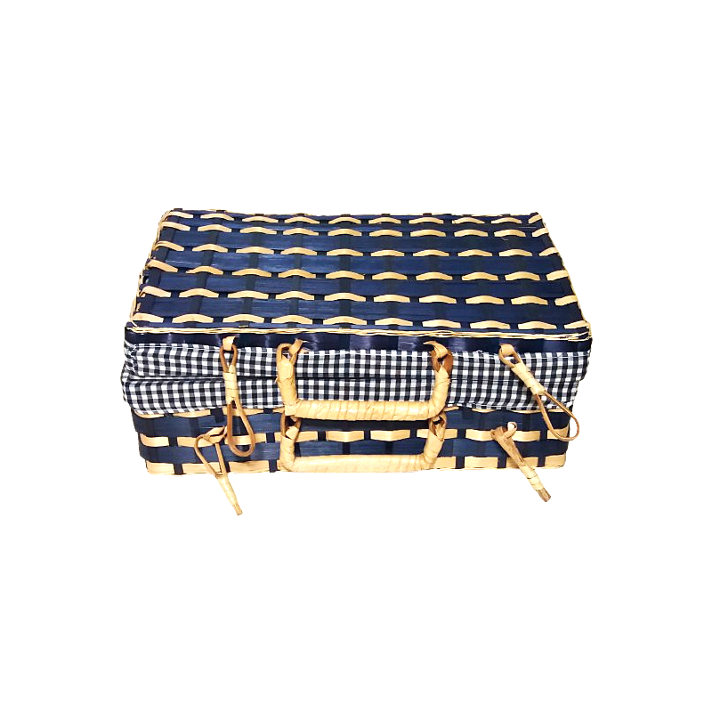 Valise bambou doublure tissu vichy, 31x20X13cm