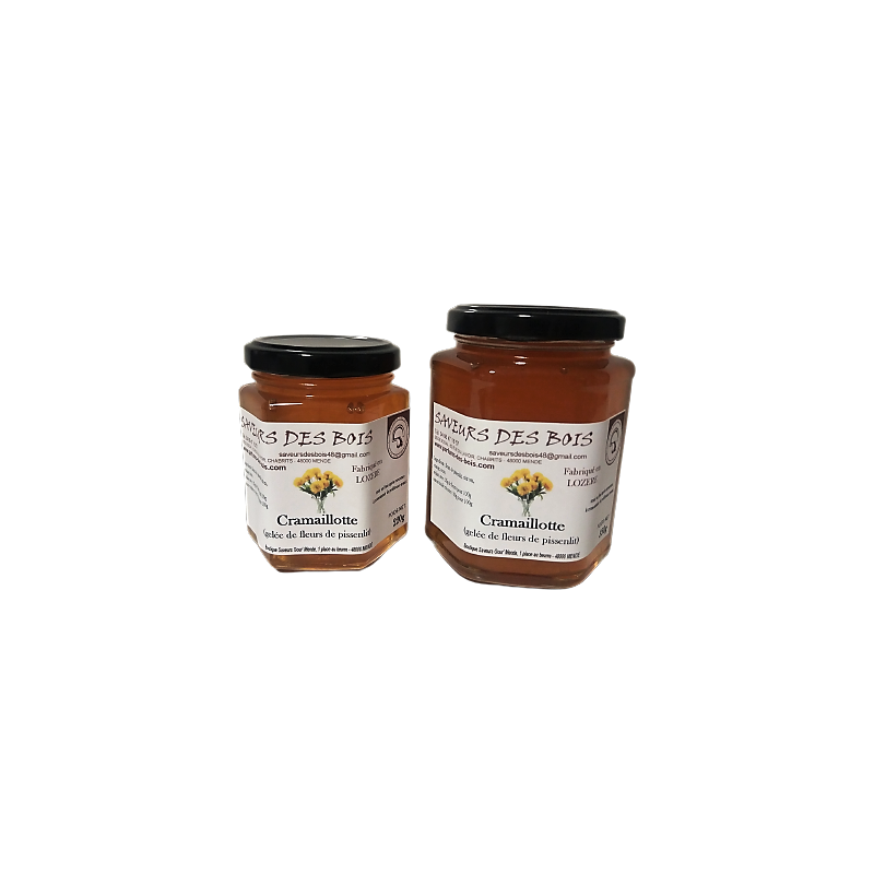 Cramaillotte, confiture de fleurs de pissenlit, pot 220g, 320g.