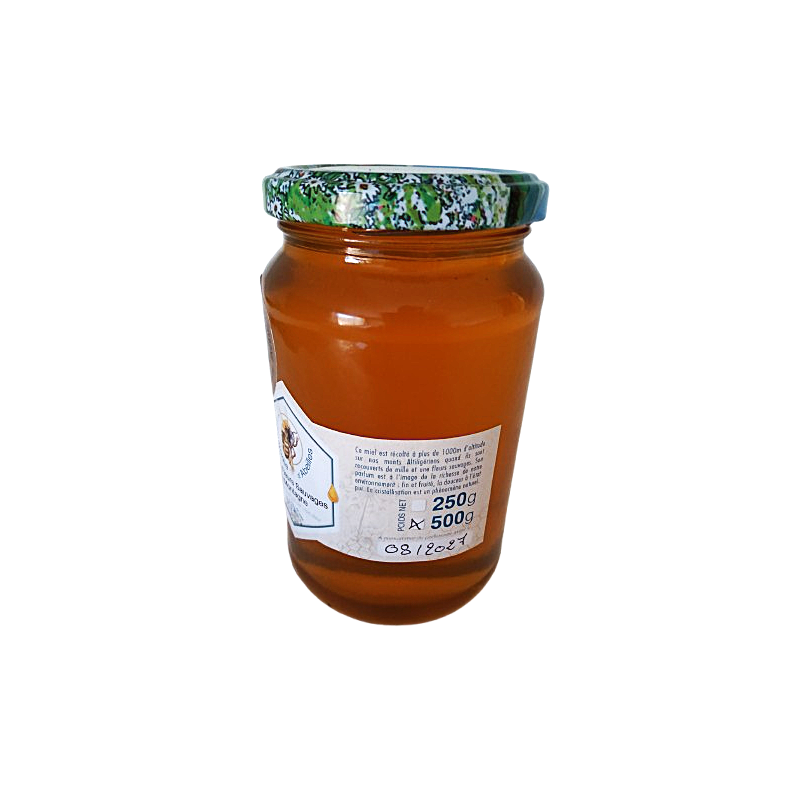 Miel de montagne, pot de 500 g ou 250 g.