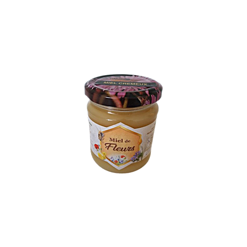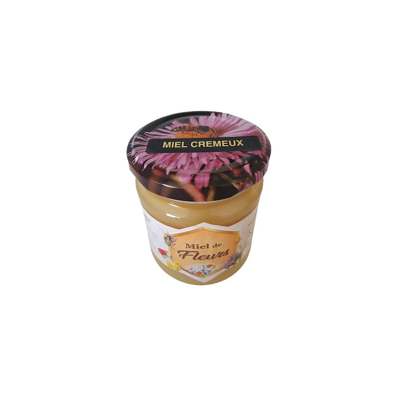 Miel de fleurs crémeux, pot de 500 g ou 250 g.